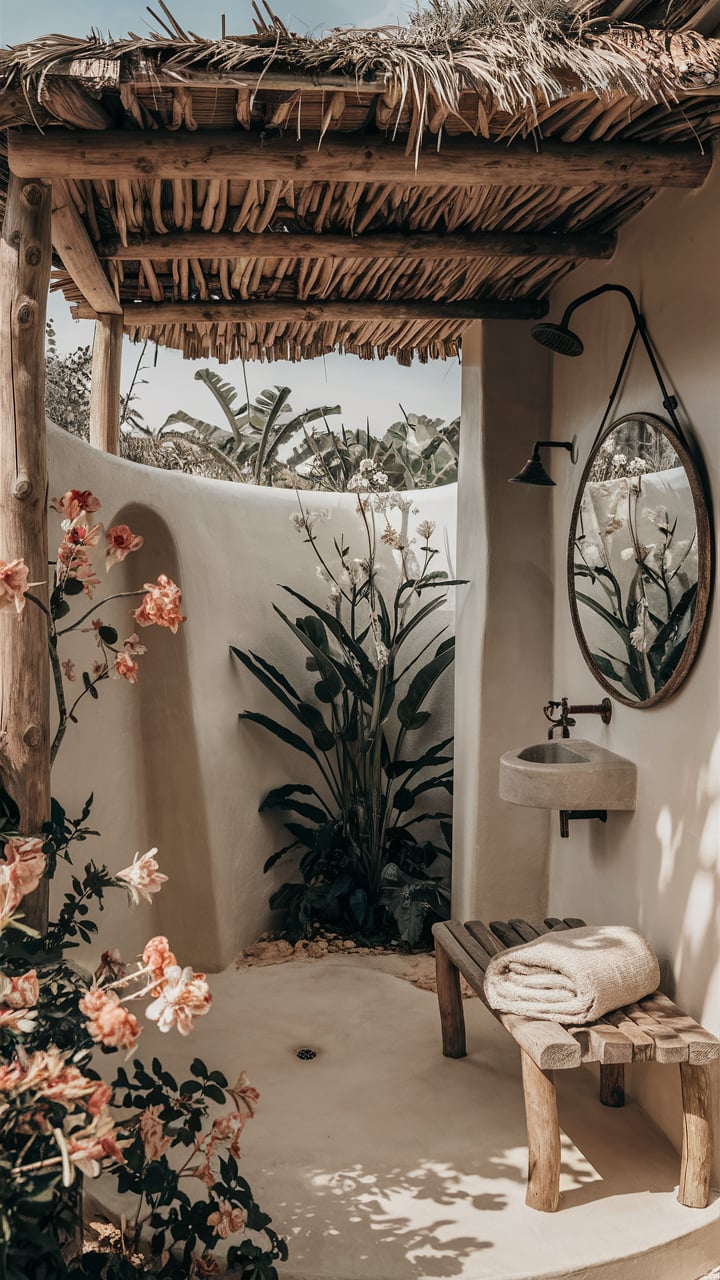 🎨 Artisan Touch: Look for locally made pottery pieces to support small businesses and bring authenticity to your outdoor bathroom.