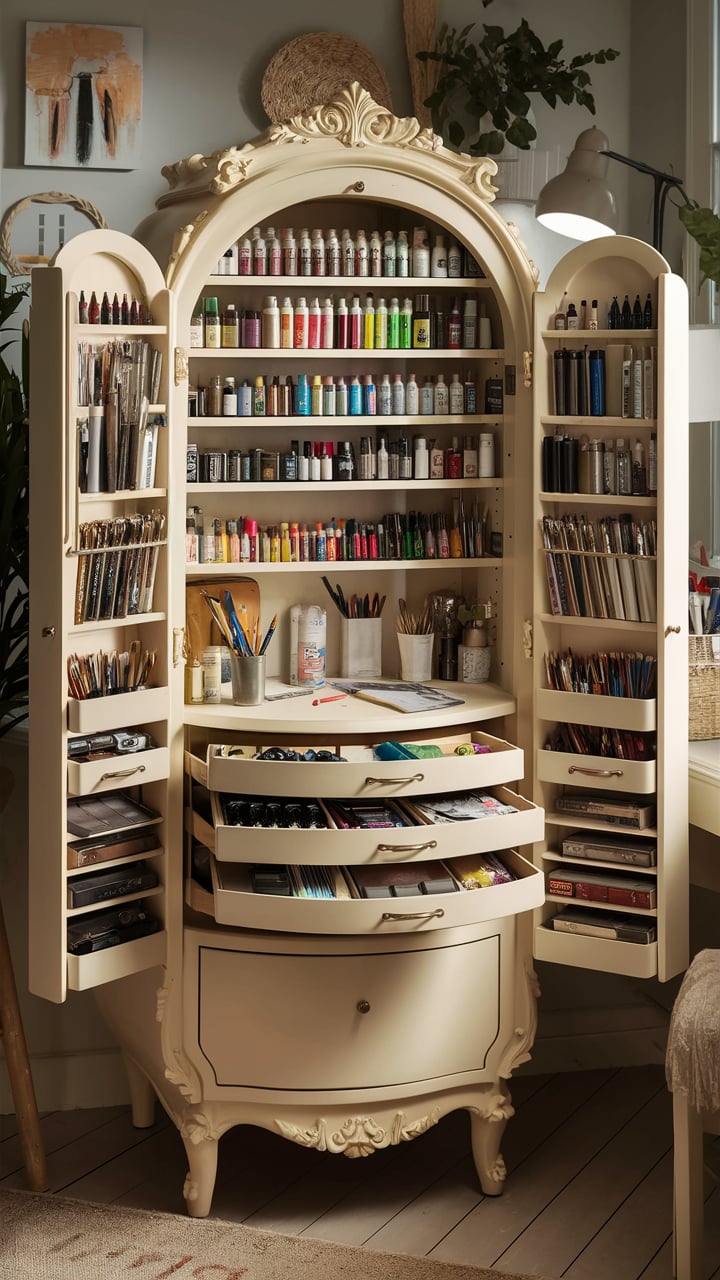 Don’t underestimate the back of a door—it’s a hidden gem for vertical storage. Install over-the-door racks or pocket organizers to hold craft paper rolls, paint tubes, stencils, or even scissors and brushes. This strategy is perfect for small rooms where wall space is limited.