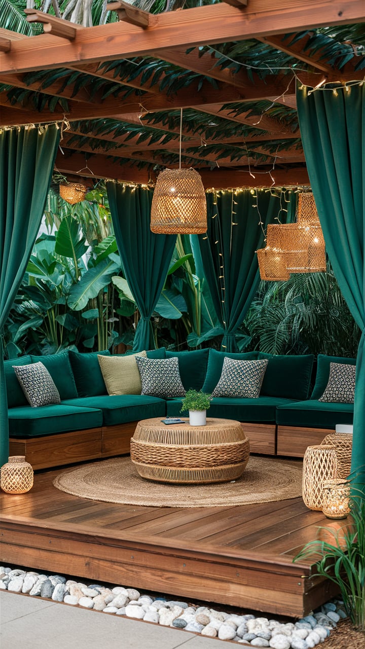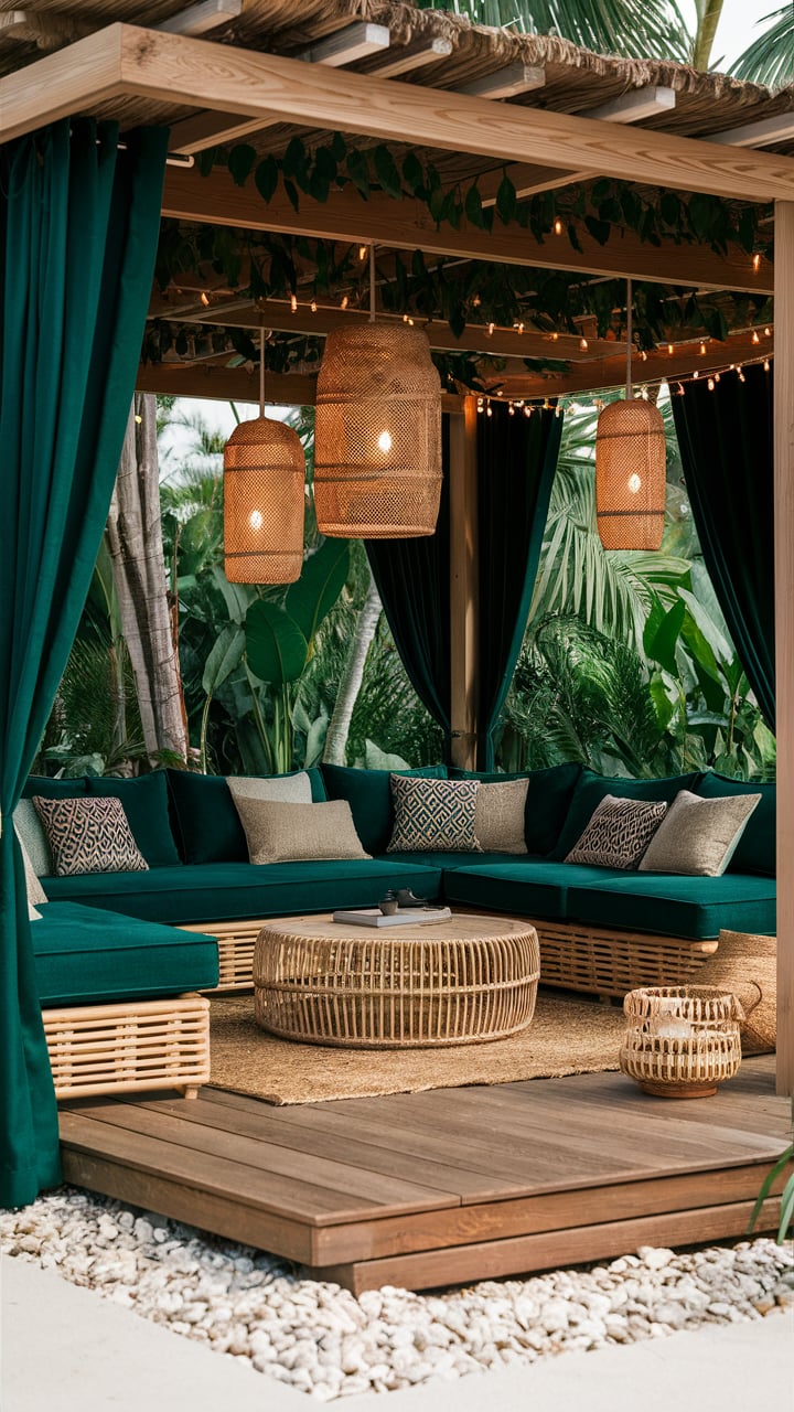 Styling Tip: Add outdoor curtains or string lights for a romantic evening setup.