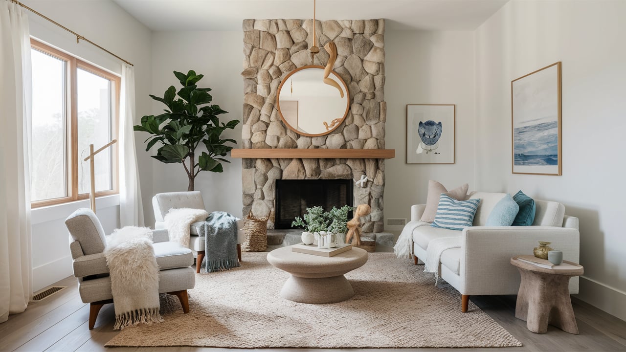 Incorporate rope-wrapped pendant lights or chandeliers for a rustic nautical feel that pairs beautifully with driftwood furniture.