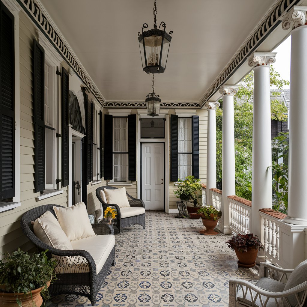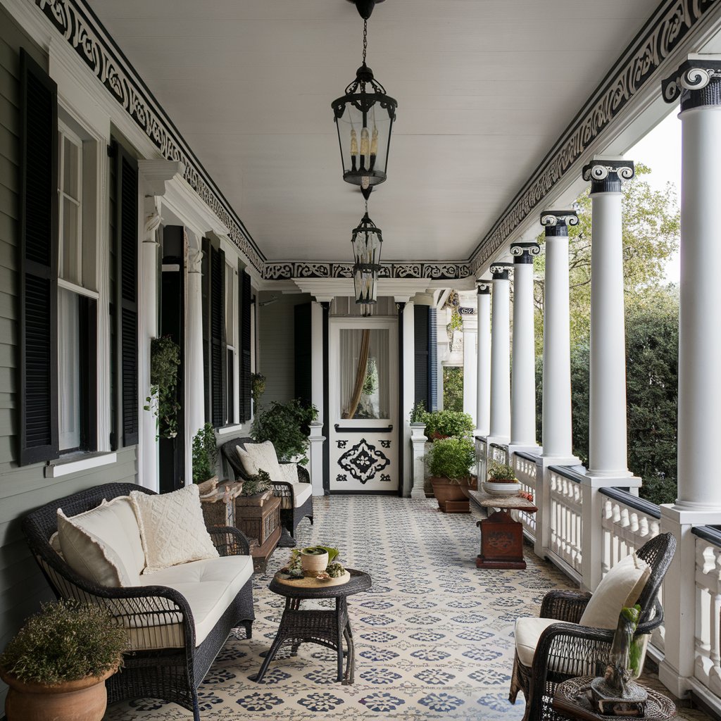 Turn your covered porch into a dynamic display that changes with the seasons. In spring, bring out pastel cushions, floral wreaths, and fresh potted tulips. Summer calls for nautical touches—striped fabrics, lanterns, and seashell accents. For autumn, layer plaid throws, rustic pumpkins, and cozy lantern lighting. In winter, add evergreen garlands, twinkling lights, and warm textiles.